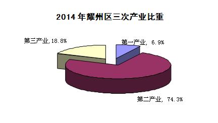 初步核算,全区实现生产总值113.88亿元,按可比价计算增长13.6%,连续十二年保持两位数增长。其中,第一产业实现增加值7.83亿元,增长4.6%;第二产业实现增加值84.64亿元,增长15.1%;第三产业实现增加值21.41亿元,增长10.2%。人均地区生产总值47450元,增长5.2%,按美元汇率折算,达到7578美元。