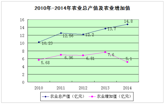 全年实现农林牧渔业总产值14.8亿元,同比增长5.1%。其中,农业产值111331万元,林业产值2911万元,畜牧业产值26163万元,渔业产值1143万元,农林牧渔服务业产值6085万元。