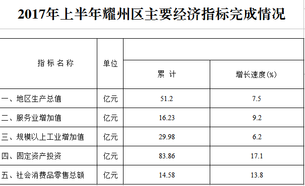 2017年上半年主要经济指标