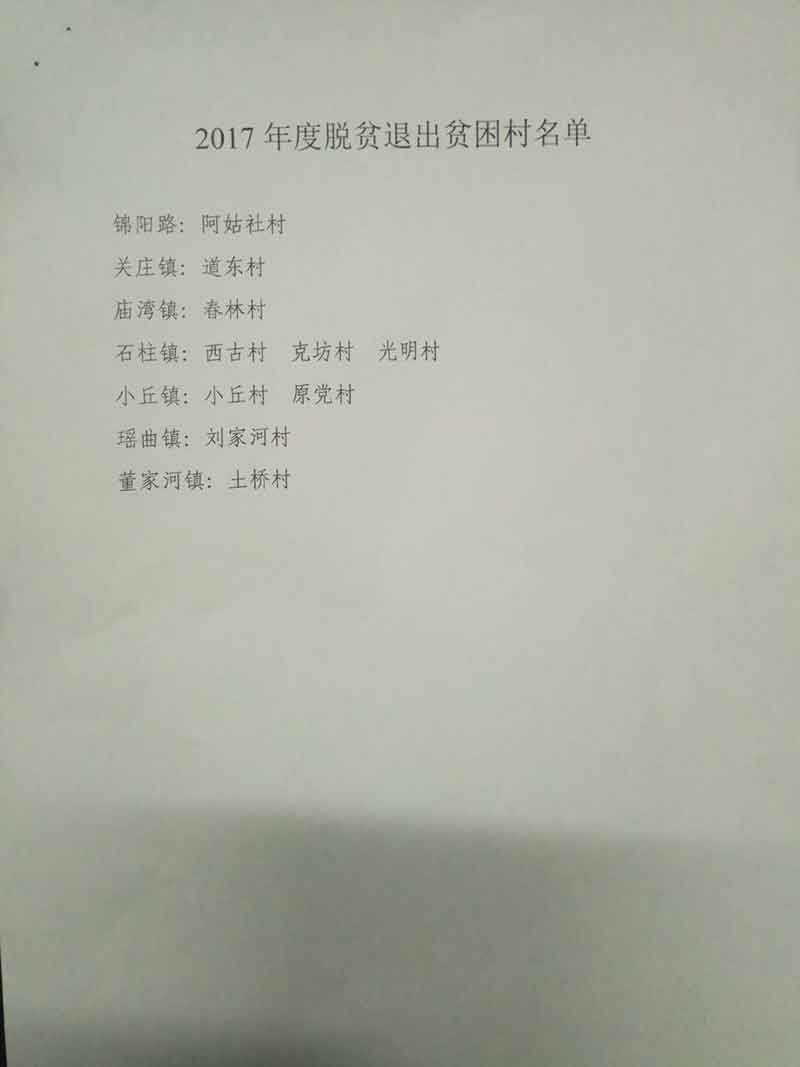 耀州区人民政府关于2017年度贫困村退出名单的公告